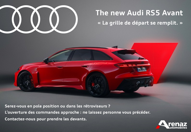 Le compte à rebours est lancé. La nouvelle Audi RS 5 est disponible à la commande dès maintenant, avec un prix débutant à CHF 116’400.– (TVA incluse). Les premiers exemplaires feront leur apparition sur nos routes à l’été 2026.