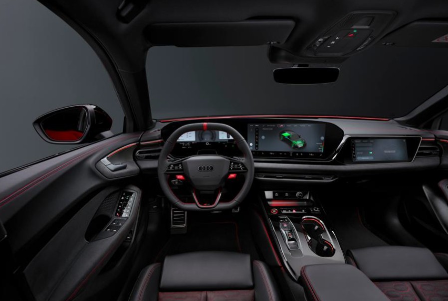 En plus du cockpit virtuel Audi de 11,9 pouces et de l’écran tactile MMI de 14,5 pouces avec affichages spécifiques RS, un écran pour le passager avant de 10,9 pouces de série vient enrichir l’expérience numérique.